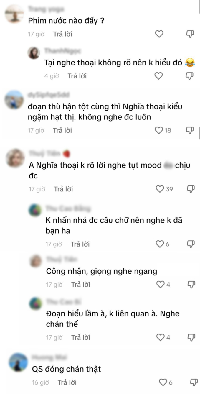 Dưới clip do nhà đài đăng tải, hàng loạt bình luận cho rằng Quang Sự thoại vô cùng khó nghe, như thể đang ngậm thứ gì đó trong miệng nên không thể nói rõ chữ. Thậm chí có khán giả còn phải hỏi rằng đây là... "phim nước nào" vì không nghe được lời thoại.