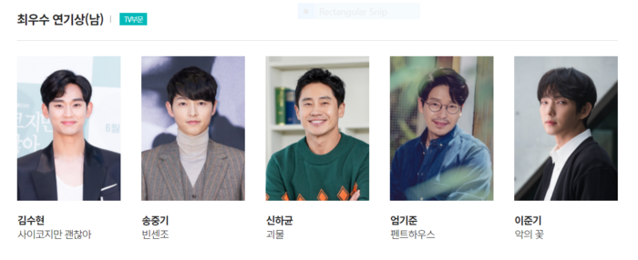 Hạng mục 'Nam diễn viên xuất sắc nhất' tại Baeksang 2021 là cuộc đối đầu cực gay gắt của những thiên tài diễn xuất, những gương mặt 'bảo chứng rating' của làng điện ảnh xứ Hàn và có trong tay nhiều tác phẩm đình đám. 5 gương mặt ở hạng mục này gồm Lee Jun Ki, Kim Soo Hyun, Song Joong Ki, Shim Ha Kyun và Um Ki Joon.