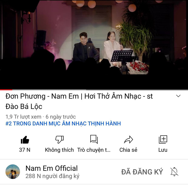 Ca khúc của Nam Em chạm mốc Top 2 Trending YouTube.