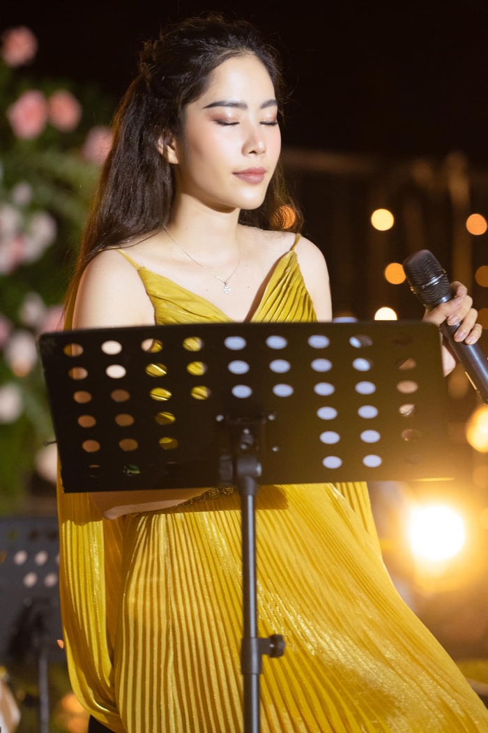 Trong đêm nhạc, diện trên mình bộ trang phục không thể đơn giản hơn khi chỉ với quần jeans và áo sơ mi trắng, cột tóc cao nhưng vẫn không làm lu mờ được nhan sắc xinh đẹp của Nam Em.
