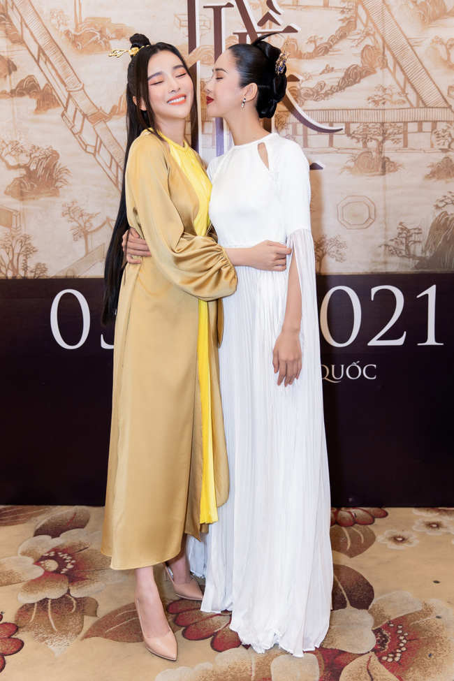 Mỹ Duyên diện trang phục trắng, khoe nhan sắc mỏng manh yêu kiều. Đứng bên cạnh Mỹ Duyên, Cao Thái Hà gây ấn tượng bởi vẻ đẹp mặn mà, sắc sảo.