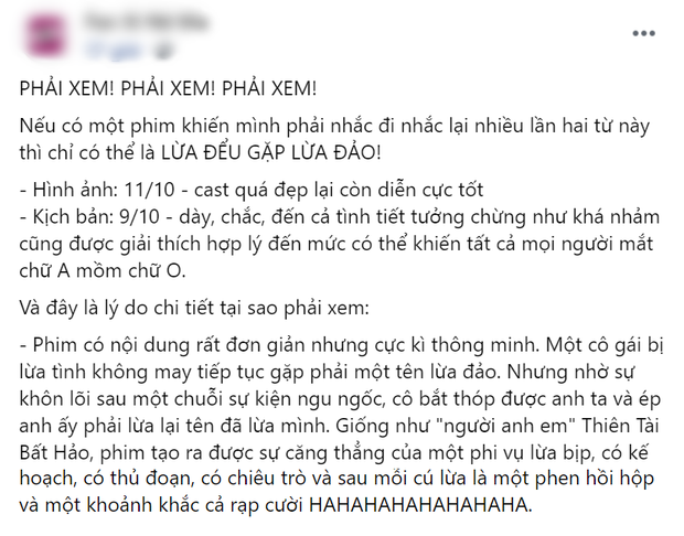 Cùng điểm qua những review đầu tiên của khán giả về Lừa Đểu Gặp Lừa Đảo (một số có tiết lộ nội dung phim, cân nhắc trước khi đọc!).
