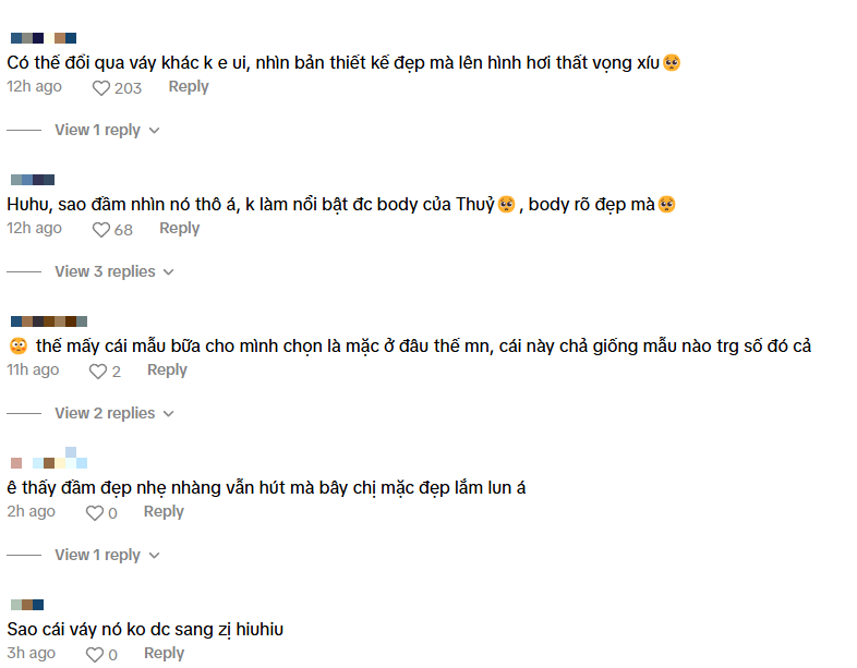 Đa phần, dân tình đều cho rằng bộ váy này không phù hợp và không tôn lên được vóc dáng của Thanh Thủy - một thế mạnh lớn giúp nàng hậu tỏa sáng trong đêm chung kết. Mỹ nhân sinh năm 2002 vốn nổi tiếng với body đỉnh chóp, vòng nào ra vòng nấy nhưng trang phục dạ hội dường như chỉ tôn được vòng 1 của cô. Nhiều ý kiến cho rằng nàng hậu sẽ tỏa sáng và hút mắt hơn với những mẫu đầm ôm sát khoe triệt để vóc dáng.