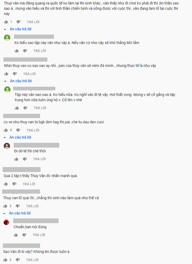 Tuy nhiên, khi tập 2 lên sóng, Thúy Vân không chỉ khiến giám khảo mà cả khán giả vô cùng ngỡ ngàng vì sự thể hiện của mình. Ở phần catwalk bịt mắt, nàng Á hậu liên tục đi chệch hướng khiến giám khảo Vũ Thu Phương phải thắc mắc: "Không hiểu sao bạn này có thể như vậy, rất lúng túng, rất yếu, nói thật tôi không hiểu bạn đang cố tình hay bạn không thể đi được".