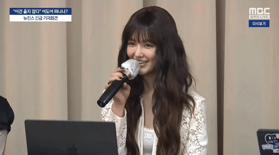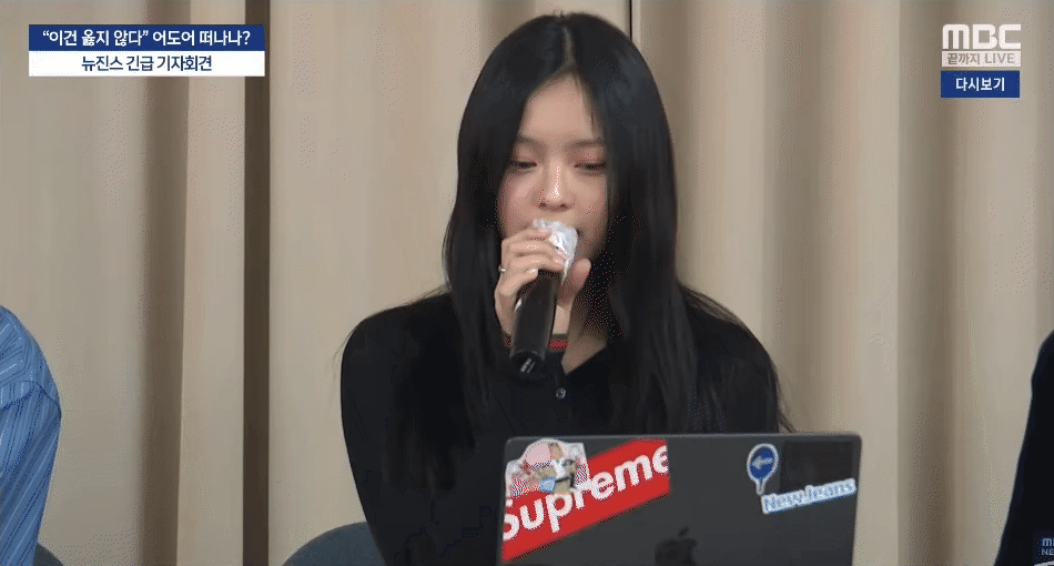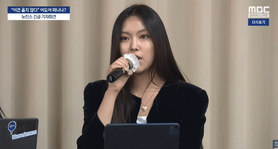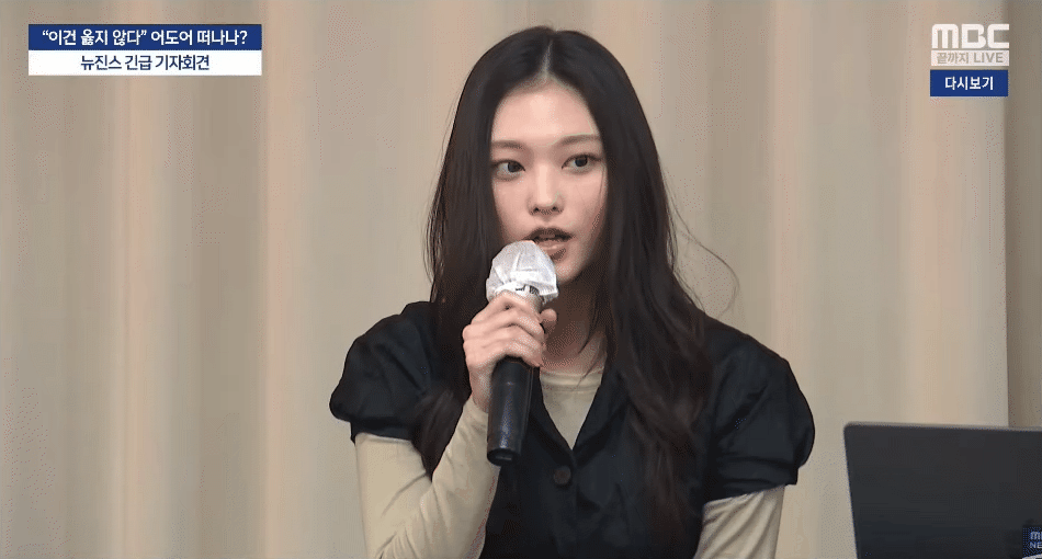 Tại buổi họp báo khẩn, 5 thành viên NewJeans xuất hiện với tạo hình đơn giản, nhưng vẫn tươi tắn, trẻ trung. Các cô gái không hề tỏ ra lo sợ hay lúng túng. Khi trao đổi thông tin với truyền thông, NewJeans rất bình tĩnh, tự tin như nắm chắc phần thắng. Thông tin quan trọng nhất đêm chính là việc "NewJeans sẽ chấm dứt hợp đồng với ADOR sau nửa đêm ngày 29/11".