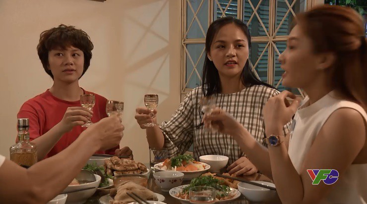 Mặc dù đang có bầu như Thư vẫn rất "hăng máu", đòi nâng ly cùng bố và hai chị em. Cuộc hôn nhân với Vũ đang khiến Thư gặp nhiều ấm ức, nhưng khoảnh khắc được vui vẻ, quây quần bên người thân đã giúp cô quên đi tất cả.