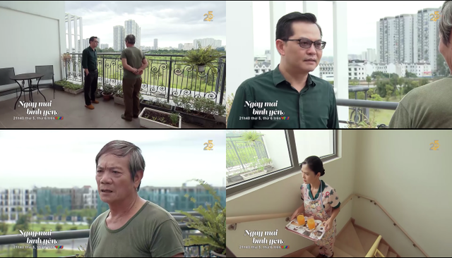 Trích đoạn phim Ngày mai bình yên tập 7 hé lộ cảnh ông Phát nói chuyện với bố mình trên sân thượng: “Bố ạ, con nói thật là lần nào bố gọi điện cho con, con cũng gửi tiền về ngay. Chứ con có tiếc gì đâu ạ. Mà bố thấy đấy, thằng Chiến có làm gì nên hồn đâu. Mấy cái đống thủy tinh, sắt vụn mà nó cứ bảo là phát minh. Cũng tiêu tốn của con mấy trăm triệu rồi chứ có ít đâu”. Đúng lúc ấy bà Trúc vừa bưng nước lên nên nghe hết những lời chồng nói với bố. Vậy là bà đã phát hiện ra chồng lâu nay lén gửi tiền về quê rất nhiều lần.