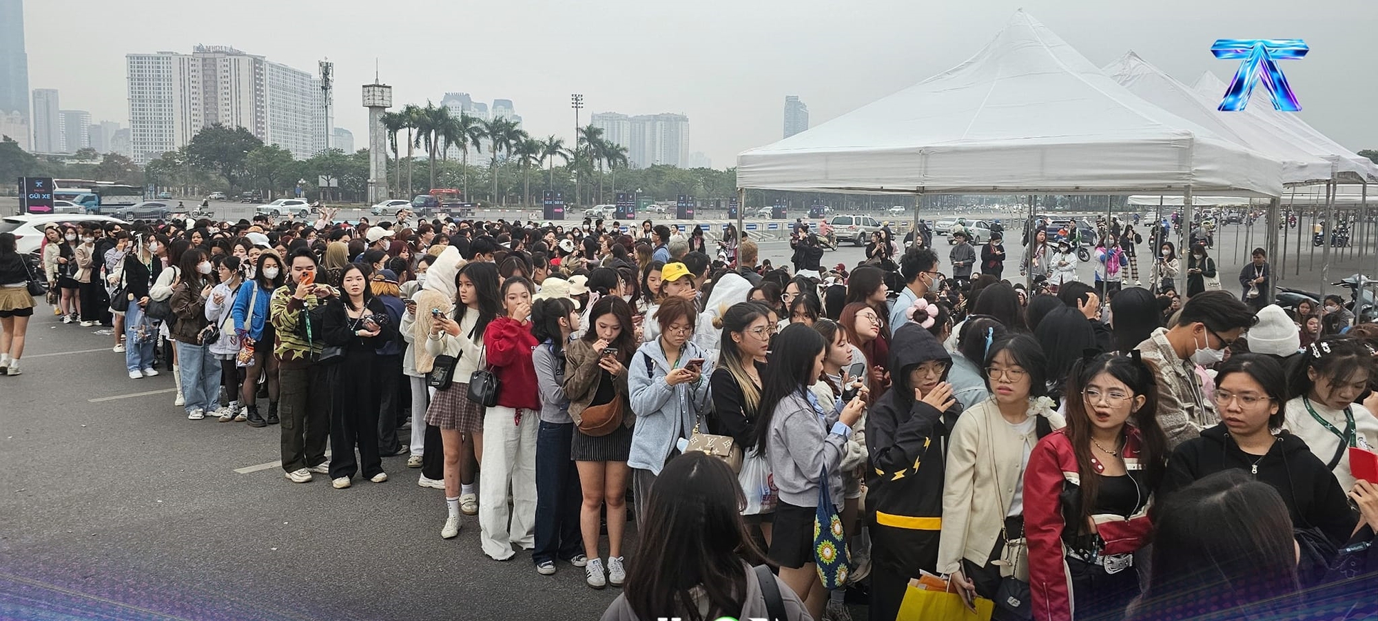 Theo lịch trình từ ban tổ chức thông báo, khán giả có thể đến check in từ 12h ngày hôm nay (6/12). Tuy nhiên, từ 4h sáng, bất chấp cái lạnh của Hà Nội, nhiều bạn trẻ đã xuất hiện ở khu vực cổng vào sân vận động Quốc gia Mỹ Đình để "xí chỗ". Đến tầm 7h sáng, dòng người đổ về địa điểm concert này ngày càng đông.