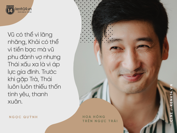 Đến với buổi phỏng vấn của chúng tôi khi đang là một trong số những gương mặt đình đám nhất của vụ trụ phim ảnh VTV, diễn viên Ngọc Quỳnh - người đảm nhận vai Thái trong Hoa Hồng Trên Ngực Trái đã có những phút trải lòng về sự nổi tiếng bất ngờ của mình. Khác hẳn với vẻ hung tợn, gia trưởng trên phim, Ngọc Quỳnh ngoài đời thật rất hoạt ngôn và luôn vui vẻ.