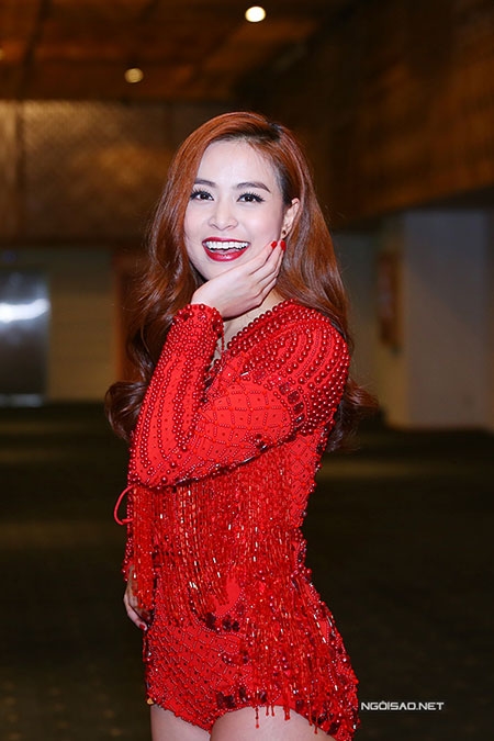 Bộ trang phục giúp Hồ Ngọc Hà khoe khéo đôi chân dài nuột nà. |
