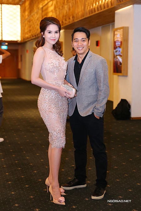 Á hậu Trà Ngọc Hằng sexy bên MC Anh Quân. |