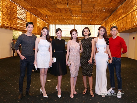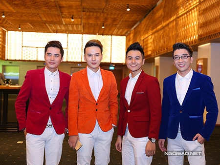 Người mẫu Võ Cảnh (trái) bên các đồng nghiệp. |