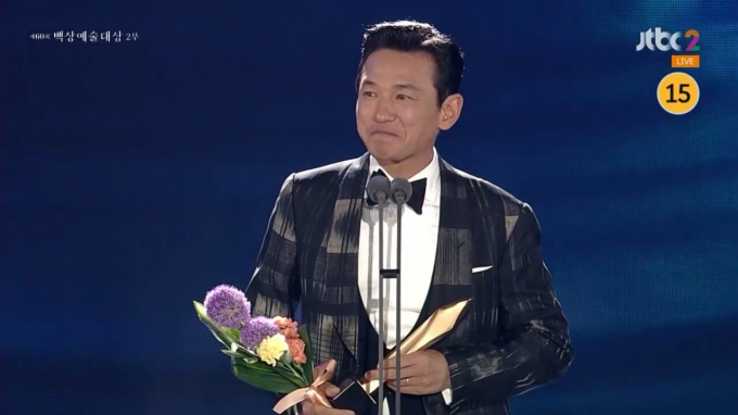 Nam tài tử hàng đầu Kbiz Hwang Jung Min cuối cùng đã cầm trên tay chiếc cúp Ảnh đế Baeksang với màn "phá nhan sắc" xuất thần trong bom tấn 12.12: The Day. Chiến thắng này đã giúp Hwang Jung Min trở thành Tam đại Ảnh đế (thắng giải Nam chính ở 3 giải danh giá nhất phim Hàn là Baeksang, Rồng Xanh và Đại Chung) sau 3 lần đề cử hụt.