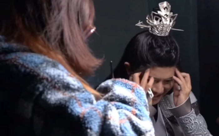 Sau đó, cặp đôi tiếp tục tập luyện cho phân cảnh Vân Hòa (Nhiệt Ba) dùng hết sức để đẩy Trường Ý (Gia Luân) ra khỏi người mình.