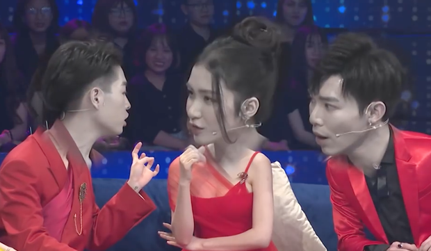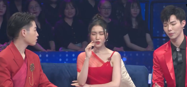 Diện trang phục đỏ rực rỡ như hoa dâm bụt, cả 3 nhanh chóng bị MC Trấn Thành "cà khịa". Nếu Đức Phúc thừa nhận dải lụa điểm nhấn trên áo của mình được lấy ý tưởng từ... khăn trải bàn thì chị cả Hòa Minzy lại phủ một miếng voan bên vai, với mục đích khi cô gái của tập 5 mở lòng thì nữ ca sĩ sẽ vén phần voan lên khiến khán giả cười ầm.
