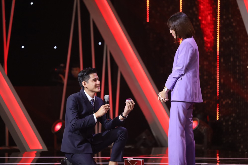Hồi đáp lại tình cảm của người bạn đời, Long Trần khiến ai nấy đều bất ngờ khi quỳ gối cầu hôn vợ mình một lần nữa ngay trên sân khấu: "Thật sự khi mà đến đây anh thật sự rất muốn làm 1 điều trước giờ em luôn anh làm điều này cho em mà anh chưa thể làm được. Em làm vợ anh một lần nữa nhé!".