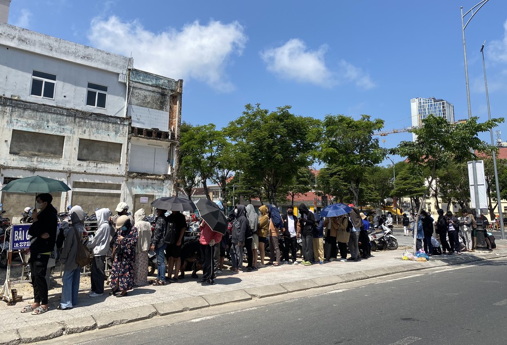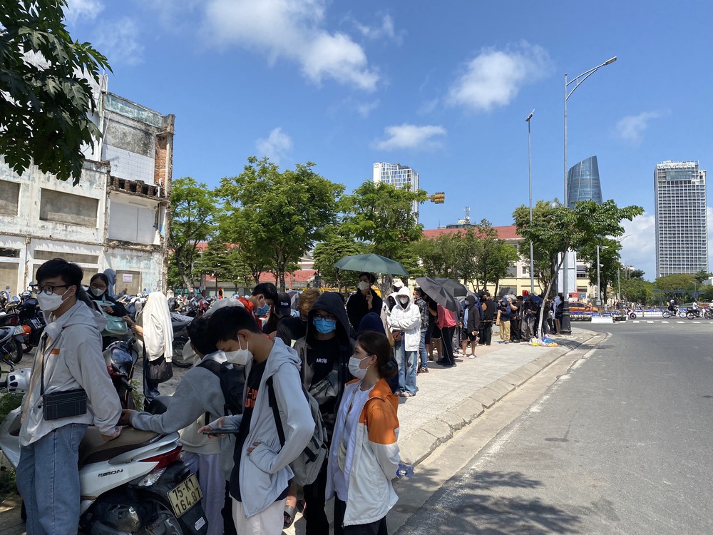 Từ sáng sớm đến chiều hôm nay (24/2), hàng ngàn người Đà Nẵng, chủ yếu là học sinh, sinh viên, đã đội nắng, đứng xếp hàng dài cả cây số để chờ mua vé xem phim "Đào, phở và piano".