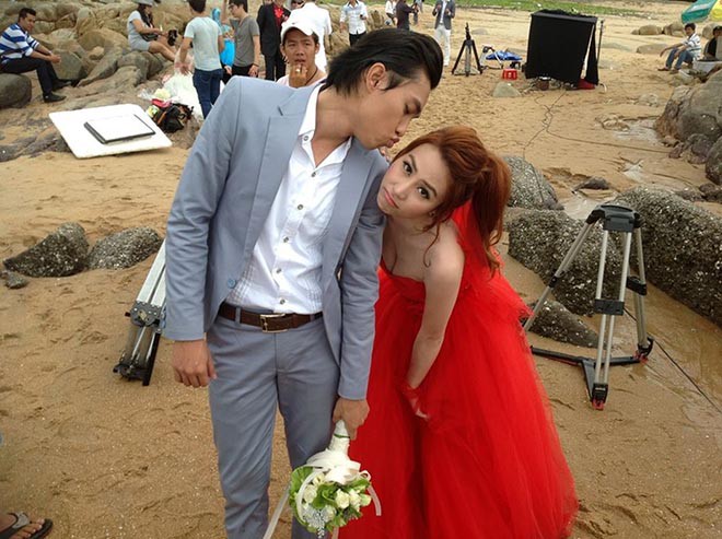 Thậm chí để không làm mất thời gian của đoàn phim, có không ít cảnh anh lấy hết can đảm để... hôn đại đàn chị. Chuyển sang cảnh cặp đôi giận nhau, Quốc Trường tiếp tục gặp khó khăn trong cách thể hiện cảm xúc.