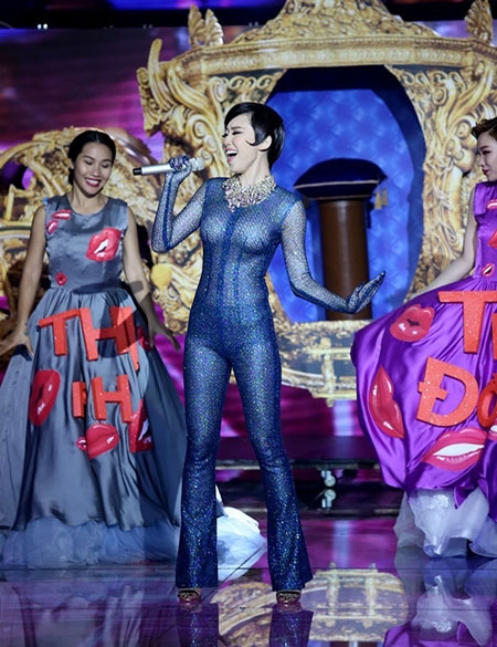 Tóc Tiên trình diễn Em đẹp nhất đêm nay trong live show 7. |
