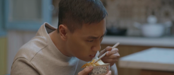 Khổ thân thầy giáo Hân, vừa ăn vừa mếu máo nhưng vẫn phải khen ngon, trong khi Lâm hả hê, còn Hân thì mặt mày nhăn nhúm vì không dám nói ra "bí mật" về món trứng.