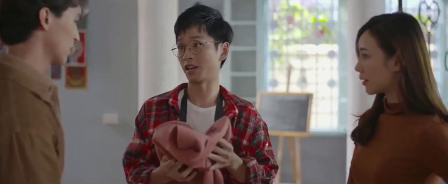 Nhân và Nhi hào hứng mở món quà ra xem. Thấy bên trong là chiếc áo màu hồng, cậu em út nghĩ ngay rằng đây là quà tặng Nhi - người yêu cũ của Lâm. Cũng "vô tư đến mức vô duyên" như Nhân, Nhi tỏ ra vui mừng vì món quà này và còn ướm thử chiếc áo vào người mình. Nhi hào hứng bao nhiêu thì Hân lại buồn bấy nhiêu vì nghĩ rằng Lâm vẫn quan tâm đến người yêu cũ.