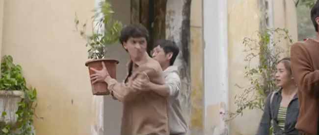 Thấy vậy, Nhân, Bách, Lâm từ nhà lao ra bảo vệ Nhiên. Trong khi Bách túm cổ Hoàng và hét: “Mày là ai mà dám đụng vào em gái tao?” thì Lâm thì cầm theo chậu hoa định đập cho tên này một trận.