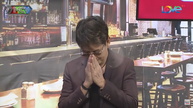 Sau khi đọc xong bức thư, nhạc sĩ Đức Huy vô cùng nghẹn ngào, xúc động. Ông chắp tay và cúi mặt trầm tư.