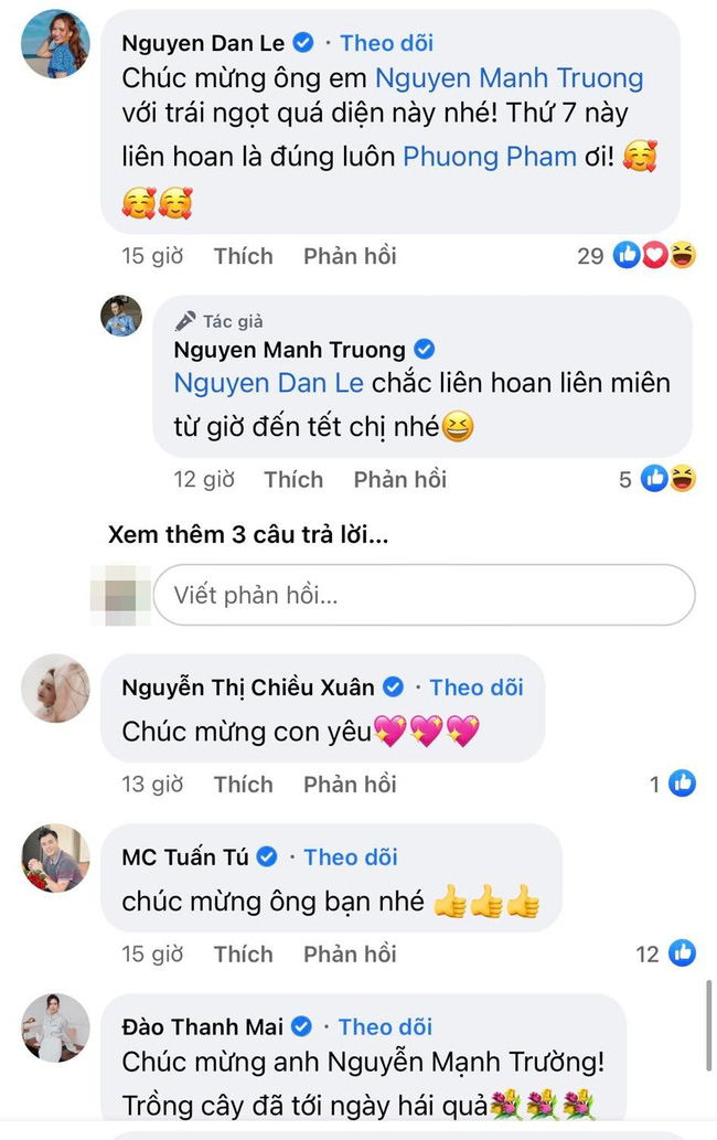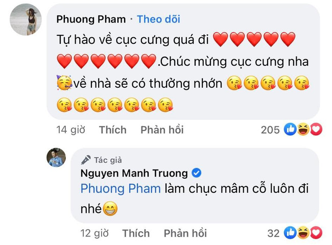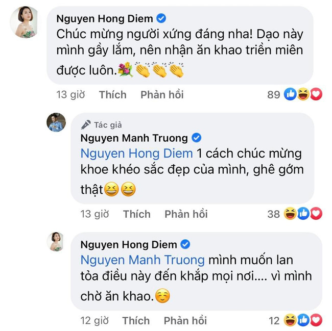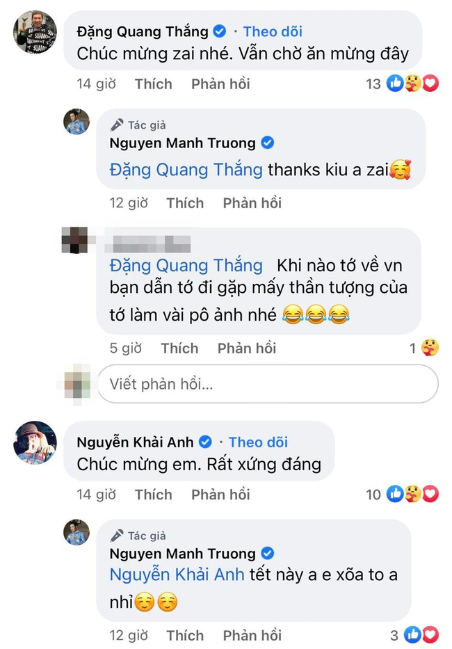 Rất nhiều đồng nghiệp như Hồng Diễm, Quang Thắng, Bình An, Đình Tú, Hồng Đăng... đã gửi lời chúc mừng Mạnh Trường kèm lời 'nhắn nhủ' đòi khao to. Trong khi rất nhiều đồng nghiệp khác thì nhận định giải thưởng này quá xứng đáng với Mạnh Trường.