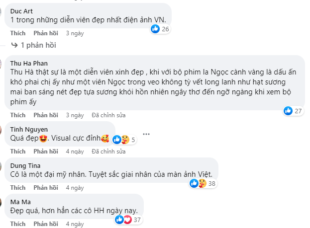 Nhan sắc diễm lệ và khí chất như hoa như ngọc giúp cô nhanh chóng nổi tiếng và được các đạo diễn ưu ái. Mới đây, những hình ảnh của NSND Thu Hà đã được một trang fanpage về phim ảnh chia sẻ và nhận được hàng ngàn lượt bình luận từ cư dân mạng. Đa số đều hết lời khen ngợi vẻ đẹp 'nghiêng nước nghiêng thành' của nữ nghệ sĩ.