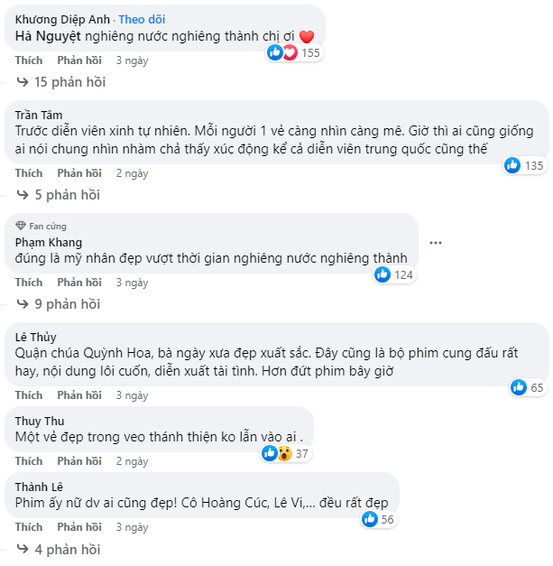 Mới đây, trên một trang bình luận về phim ảnh, những hình ảnh trong phim “Đêm hội Long Trì” của NSND Thu Hà bất ngờ nhận được vài chục nghìn lượt yêu thích và bình luận không ngớt về vẻ đẹp tự nhiên thời trẻ của mỹ nhân điện ảnh này.