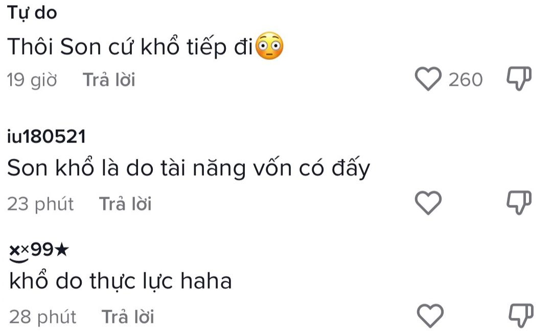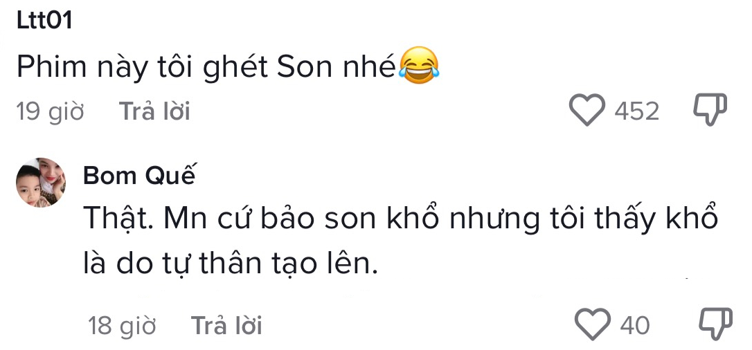 Trên mạng xã hội, nhiều khán giả bày tỏ ức chế với nhân vật Son vì cô bảo thủ, nhu nhược, tự làm khổ bản thân.