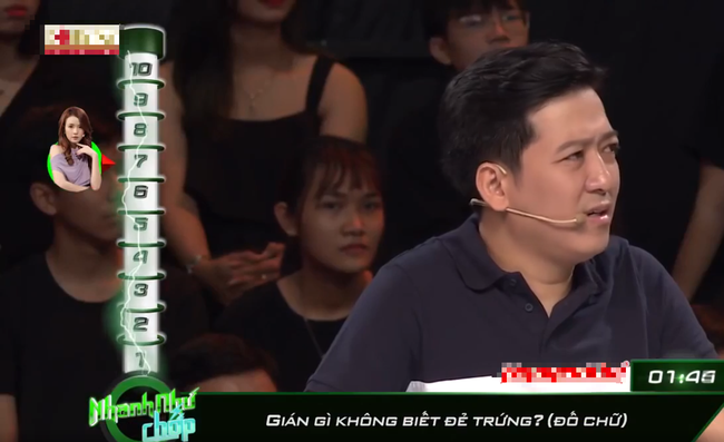 Trước lý giải nghe không rõ từ, Trường Giang bức xúc nhắc nhở Xuân Nghị: "Khi hỏi gián gì không biết để trứng, phải liên tưởng đến con gián. Dán thì làm sao đẻ trứng. Bữa nay em sao vậy". Hari Won tiếp lời trêu: "Từ lúc nắm tay Midu, Nghị đã không còn giữ được bình tĩnh".
