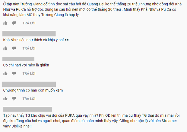 Ở lượt tham gia thứ 2 của Quang Đại, Trường Giang bị cho là có thái độ khó chịu với đội của nam người mẫu khi liên tục sân si với Khả Như và Puka. Thậm chí, có ý kiến cho rằng Trường Giang cố tình đọc sai câu hỏi để Quang Đại không thể giành lấy 20 triệu.