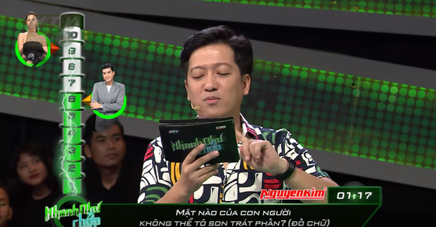 Cụ thể, với câu hỏi "Mặt nào của con người không thể tô son trát phấn?", Trường Giang đã đọc thiếu chữ "của" mà chỉ cần bỏ chữ này đi thì câu đố đã được hiểu theo một ý nghĩa khác rồi. Mặc dù Quang Đại hỏi đi hỏi lại rằng: "Mặt của con người hay là sao?" nhưng Trường Giang vẫn đọc lại mà thiếu chữ "của", thậm chí Khả Như & Puka đứng dưới phải chỉnh lại cho đúng thì Quang Đại mới trả lời được.