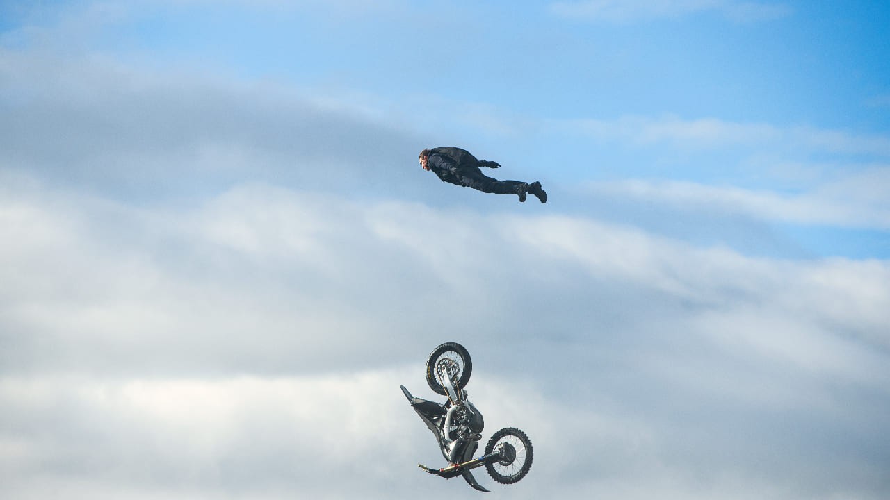 Phân đoạn ấn tượng nhất là khi Ethan Hunt lái môtô đuổi theo đoàn tàu tốc hành. Nhân vật phải phóng xe từ một vách núi với vận tốc cao, sau đó nhảy dù giữa không trung. Để bắt trọn khung cảnh, quay phim cũng phải nhảy dù theo ngôi sao để ghi hình từ phía sau.