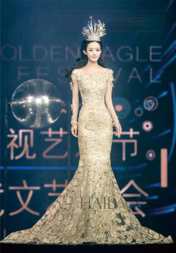 Tạo hình của Triệu Lệ Dĩnh cũng khá đơn giản, cô gần như chỉ diện 1 chiếc váy ôm sát thân người và đội thêm vương miện cùng tông màu. Dẫu vậy, với số đông khán giả, đây là tạo hình đẹp nhất trong số những tạo hình Nữ thần Kim Ưng đã xuất hiện. Dù cách thời điểm hiện tại đến 6 năm nhưng tạo hình này vẫn được đánh giá là hợp thời trang.