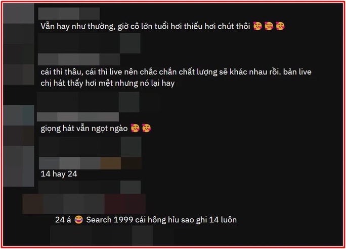 Tuy nhiên, dân mạng cho rằng việc so sánh 2 tiết mục các nhau hơn 20 năm là khập khiễng, chưa kể sân khấu năm 1999 của Như Quỳnh là bản được thu âm trước, còn đêm nhạc gần đây nữ ca sĩ hát live.