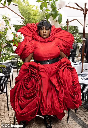 Nữ ca sĩ Yseult Onguenet với đầm đỏ cách điệu hoa hồng rực rỡ nhưng lại khiến thân hình mũm mĩm của cô trở nên quá khổ hơn. Bộ đầm không tôn lên vóc dáng mà còn dìm Yseult Onguenet hơn.