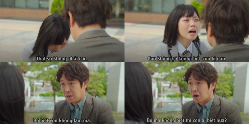 May mắn thay, dù cả thế giới có quay lưng lại với Bang Da Mi, người bố nuôi Lee Hwi So vẫn luôn tin tưởng con gái vô điều kiện. Giây phút nhìn thấy bố, biết bao sự tủi thân, uất ức dâng lên trong lòng Bang Da Mi khiến cô không thể kìm nổi những giọt nước mắt.