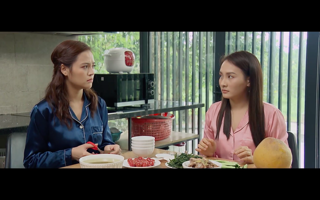 Nhưng ngay sau đó Thư phải pháo: "Yêu đấy, tin đấy nhưng dạy dỗ là vẫn phải dạy dỗ. Con an ủi chị theo cách những người phụ nữ đã lấy chồng với nhau".