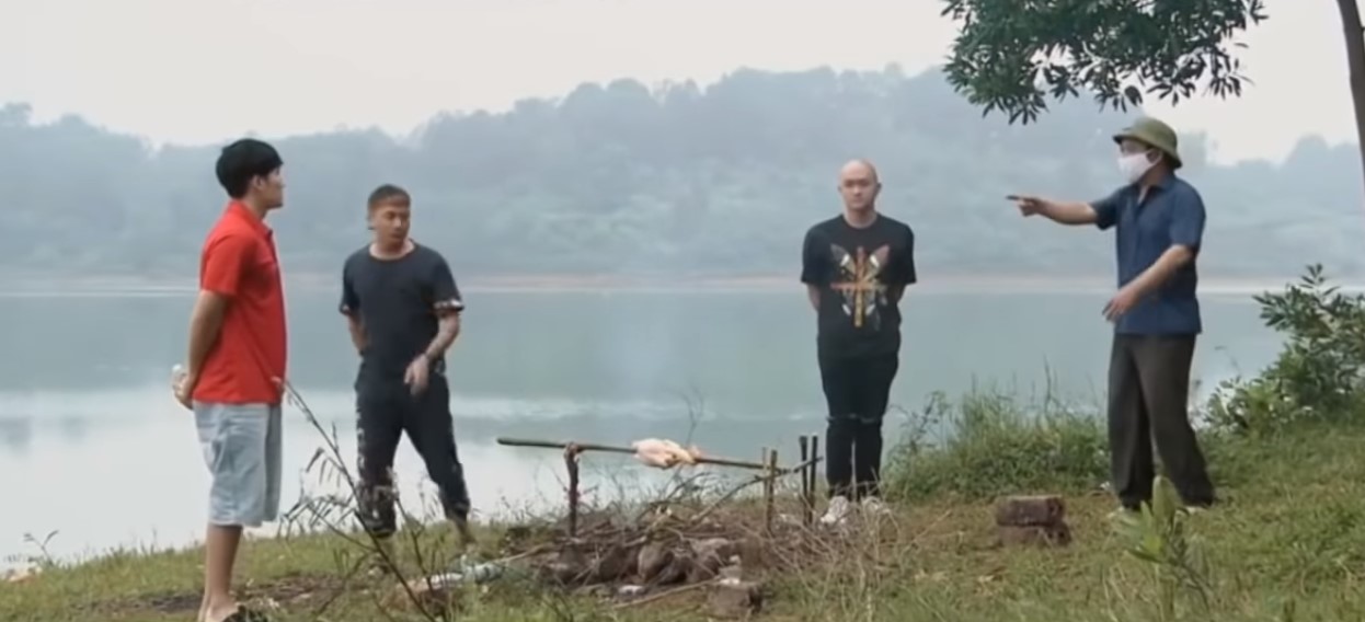 Trong một diễn biến khác, Khoa gà, Cân và Quất rủ nhau đi ăn nhậu bên bờ sông. Khoa tỏ ra chán nản: “Quả dịch này khiếp, gấp mấy lần tai họa lão Tài gây ra. Về nhà thì cấm tụ tập, ra ngoài hàng quán lại không cho”.