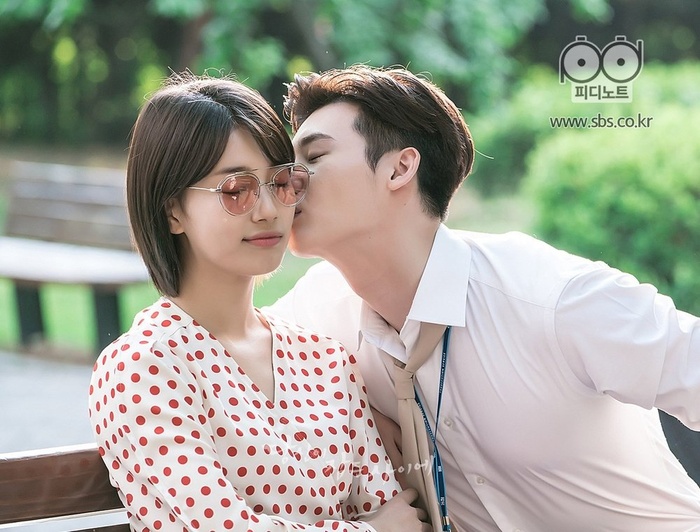 Trong một cảnh quay của While You Were Sleeping, khi Nam Hong Joo (Suzy) đang đeo kính râm để tránh sự chú ý của mọi người xung quanh thì Jung Jae Chan (Lee Jong Suk) lại không thể kìm được mà hôn lên má của bạn gái. Đây xứng đáng là màn chemistry vừa đỉnh vừa dễ thương của cặp đôi.