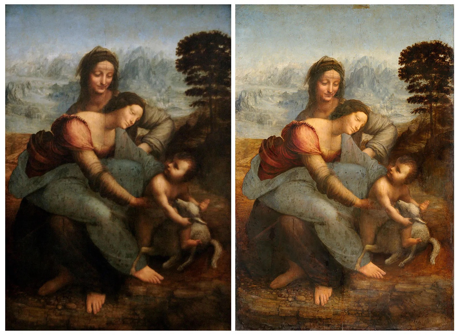 Khi làm sạch The Virgin and Child with St. Anne vào năm 2010–2011 để loại bỏ bụi bẩn và khắc phục việc bay màu, màu sắc của bức tranh sáng hơn rõ rệt. Nhiều người cảm thấy tác phẩm thay đổi quá mức, trong đó có 2 chuyên gia nghệ thuật đã từ chức để phản đối Ủy ban giám sát việc phục chế bức tranh.