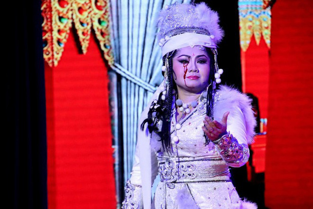 NSƯT Tú Sương bị đao đâm thẳng vào chân mày khiến mặt bê bết máu nhưng vẫn cố gắng biểu diễn tiếp