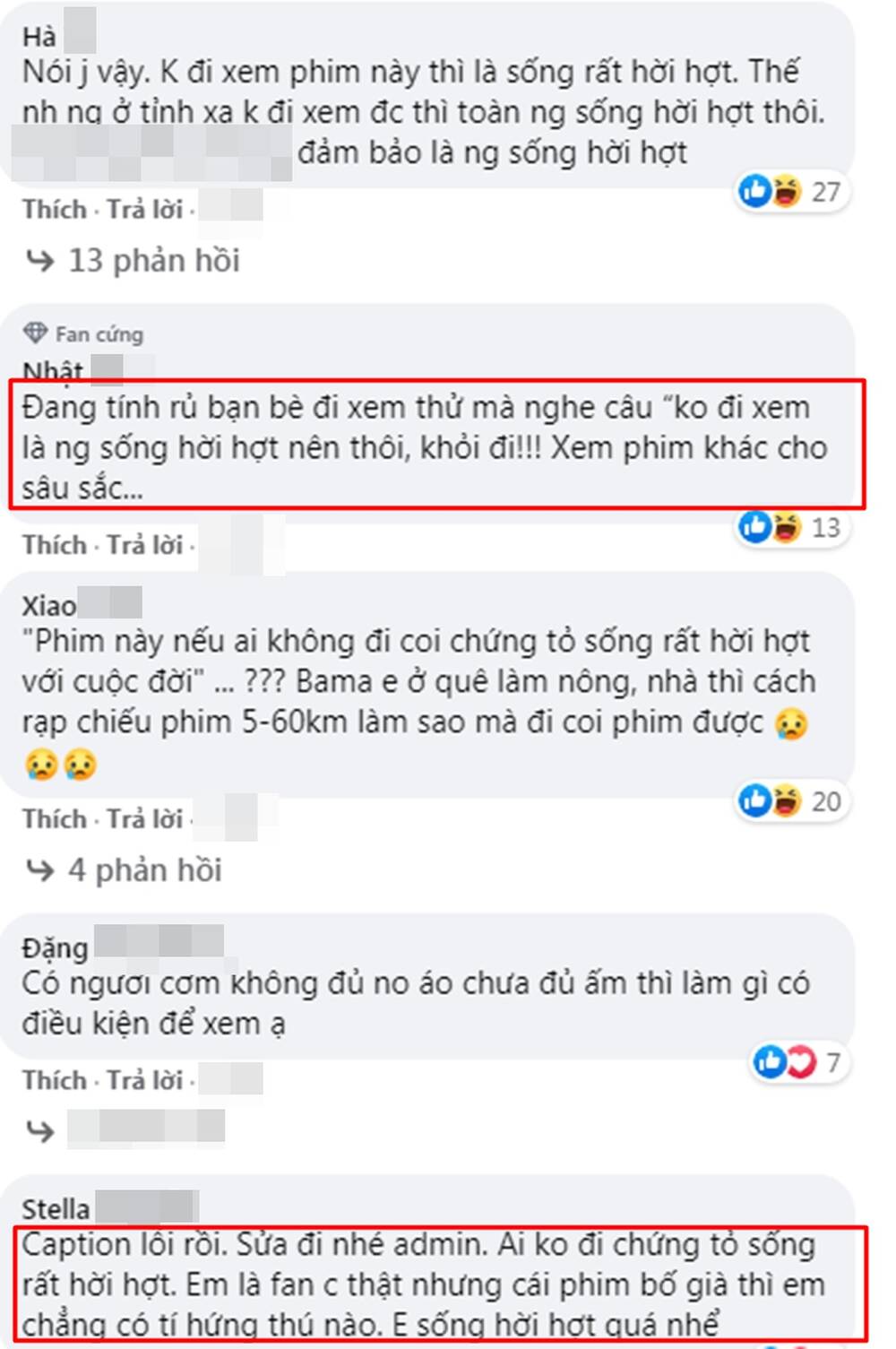 Không chỉ bức xúc, nhiều dân mạng còn để lại bình luận khẳng định vì câu nói này của Hồ Ngọc Hà mà sẽ không ra rạp xem phim Bố già của Trấn Thành nếu Hồ Ngọc Hà không sửa lại bài đăng. Số khác chê bài Hà Hồ PR phim cho Trấn Thành quá lố dẫn đến phản ứng ngược, ảnh hưởng đến đoàn phim.