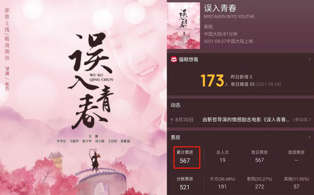 Sau đó vào năm ngày 27/8 vừa qua, bộ phim Ngộ Nhập Thanh Xuân ra mắt cũng quy tụ dàn cast quen thuộc của Tây Du Ký là Từ Thiếu Hoa, Mã Đức Hoa, Lưu Đại Cương và "Bạch Mã" Vương Bá Chiêu. Thế nhưng với việc tái hiện Tây Du Ký trong bộ phim lần này, khán giả tiếp tục tỏ ra ngán ngẩm, dẫn đến sau 3 ngày chiếu rạp doanh thu phim chỉ dừng lại ở con số 567 tệ (gần 2 triệu đồng), tức có khoảng 19 lượt người đến xem.