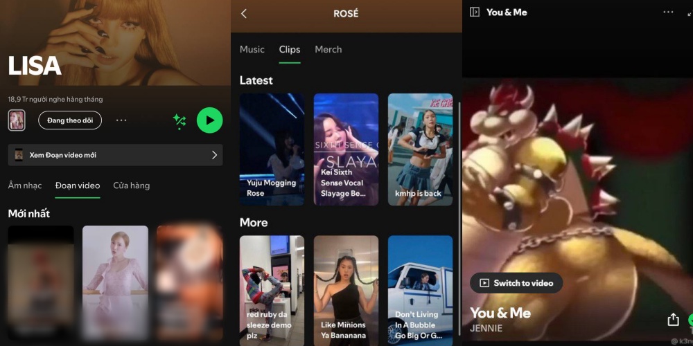 Đáng nói, hình ảnh được sử dụng là khoảnh khắc gây tranh cãi của Kiss Of Life thời gian gần đây. Không chỉ thế, phần video liên quan thuộc kênh Spotify của BLACKPINK cũng xuất hiện nhiều clip 18+ với nội dung dung tục.