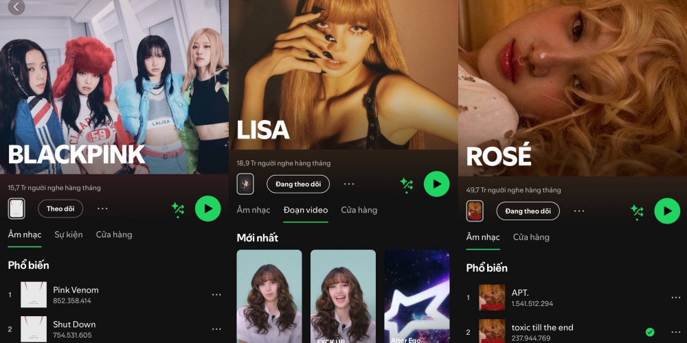 Ngoài kênh của BLACKPINK, tài khoản Spotify của các thành viên Jennie, Lisa, Rosé cũng gặp phải trường hợp tương tự. Dù không có hình ảnh nhạy cảm nhưng kênh của các nghệ sĩ cũng xuất hiện nhiều video với nội dung lạ. Điều này khiến cộng đồng BLINK - fandom BLACKPINK không khỏi hoang mang, lập tức tạo nhiều bài đăng, “tag” tài khoản của YG Entertainment để nắm rõ và xử lý vụ việc.