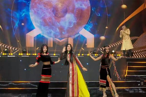 Thí sinh Hoa Đan tự tin chào giám khảo và khán giả với phong thái tự tin, nhận câu hỏi: “Bạn biết ơn điều gì nhất trong cuộc sống?”. Cô nói biết ơn nhất hành trình này: hành trình của người con nhớ gia đình, một cô gái dân tộc Kinh mang theo hình ảnh gói bánh chưng của gia đình kể câu chuyện về bản sắc của 54 dân tộc tới toàn thế giới.