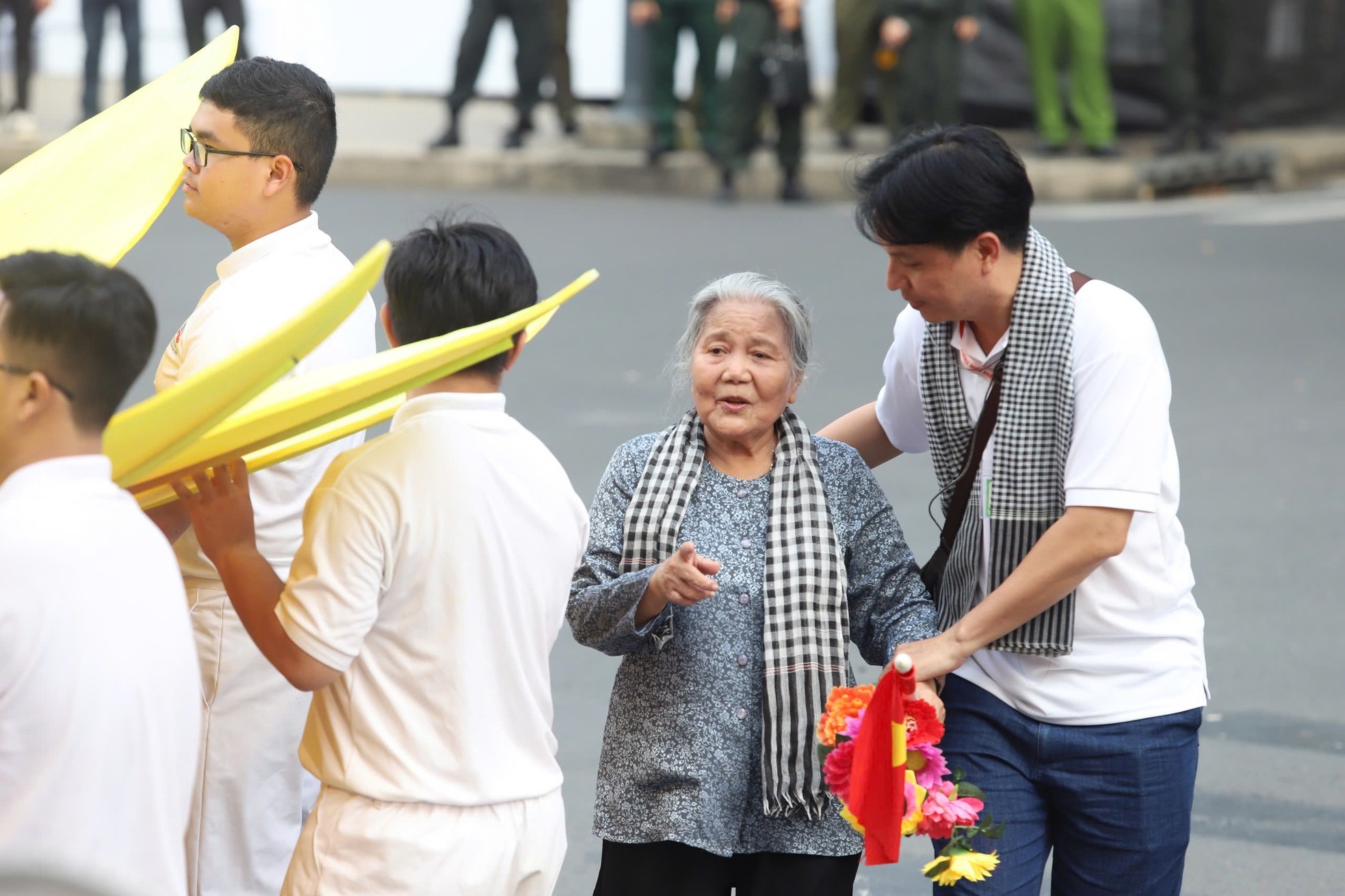 Từng nghĩ giới trẻ dửng dưng với lịch sử, NSƯT Lê Thiện thừa nhận bản thân “đã hiểu sai” những người trẻ. Trong những ngày tập luyện cho đại lễ, bà chứng kiến hàng nghìn người dân, nhất là sinh viên, học sinh trải bạt chờ xem tổng duyệt. Mỗi lần đi ngang, bà xúc động đến bật khóc trước hình ảnh cờ đỏ rợp trời từ phố đi bộ Nguyễn Huệ đến Dinh Độc Lập.